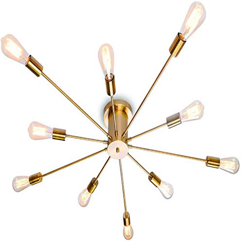 a pay review Modern Sputnik Chandelier Black Flush Mount Ceiling Light Rustic Chandelier for Living Room Bedroom Dining Room Kitchen 10 Lights (Brass)